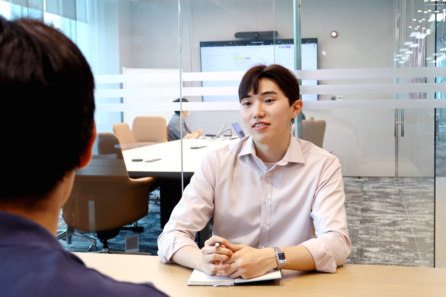 준영: 저는 문화원칙은 아니지만 직급 없이 서로를 ‘님’으로 부르는 문화가 정착이 된 게 신기해요. 금융업은 일반적으로 엄격하고 보수적인 분위기라는 인식이 강한데, 이런 호칭 문화 덕분에 다른 직원분들과 시간이 지날수록 오히려 더 쉽게 친해지고 편하게 소통할 수 있었습니다. 물론 아직 어색한 부분도 있기는 해요.